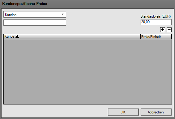 wird der "Kundenspezifische Preise / Bezeichnungen"-Dialog geöffnet.