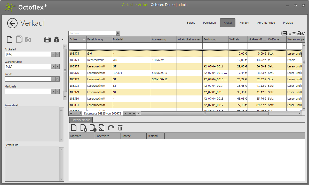 Aufgrund einer aktuellen Umstrukturierung in den Masken der Software befinden sich im Octoflex ERP-Client sowohl Datenbereiche bei denen die Spalten bereits angepasst und ausgewählt werden können, als auch Datenbereiche, wo dies noch nicht möglich ist. Im Zuge der Weiterentwicklung wird dies nach und nach weiter umgestellt werden. Die neuen, anpassbaren Datenbereiche warten mit ein paar neuen Funktionalitäten auf, die dementsprechend in den noch nicht umgestellten Datenbereichen noch nicht verfügbar sind.
