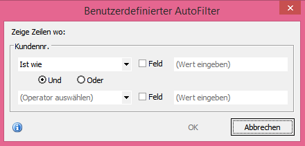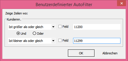 es öffnet sich ein "Benutzerdefinierter Autofilter"-Dialog
