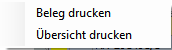 Mit Tastatur Pfeiltasten und "Enter" oder mit Mausklick "Übersicht drucken" auswählen. Es öffnet sich der "Druck"-Dialog. Druckbelege kann der Implementierungspartner anpassen und hier hinterlegen.