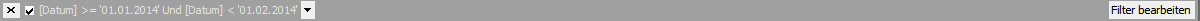 - Der Text gibt den gesetzten Filter wieder. Dabei ist die Bezeichnung in den [ ] der Spaltenname, auf den sich der Filter bezieht.