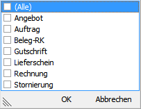 An einigen Spalten öffnet sich ein "Multi-Select-Filter"-Dialog. Der Inhalt dieses Dialoges passt sich dem Spalteninhalt an.