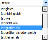 Hier ist eine Liste von Eingrenzungsmöglichkeiten aufgelistet. Für dieses Beispiel mit Tastatur Pfeiltasten und "Enter" oder über Mausklick "Ist größer als oder gleich" auswählen.