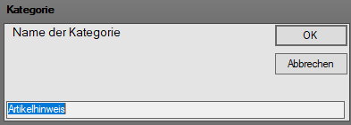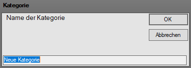 Die Bezeichnung der neuen Kategorie in das Textfeld im unteren Fensterbereich eingeben und mit der Taste "Enter" bestätigen oder das Fenster über den Button "OK" verlassen. Die neue Kategorie wird erstellt.