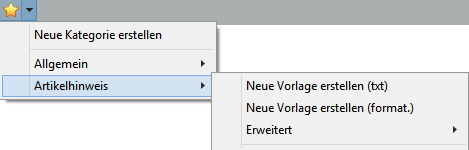 klicken. Es öffnet sich ein Auswahl-Menü mit der Möglichkeit eine neue Vorlagenkategorie zu erstellen, oder eine bereits vorhandene Kategorie zu nutzen.