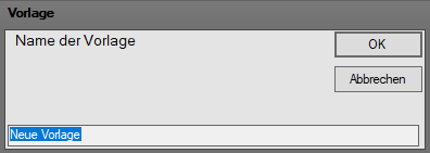 Die Bezeichnung der neuen Vorlage in das Textfeld im unteren Fensterbereich eingeben und mit der Taste "Enter" bestätigen oder das Fenster über den Button "OK" verlassen. Der im Zusatztext eingegebene Text wurde als Vorlage unter dem eingegebenen Namen in der ausgewählten Kategorie hinterlegt.