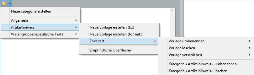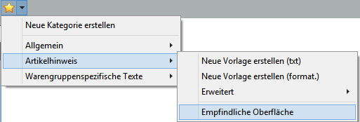 Regelmäßig wiederkehrende Artikeltexte können als Textvorlagen gespeichert werden.