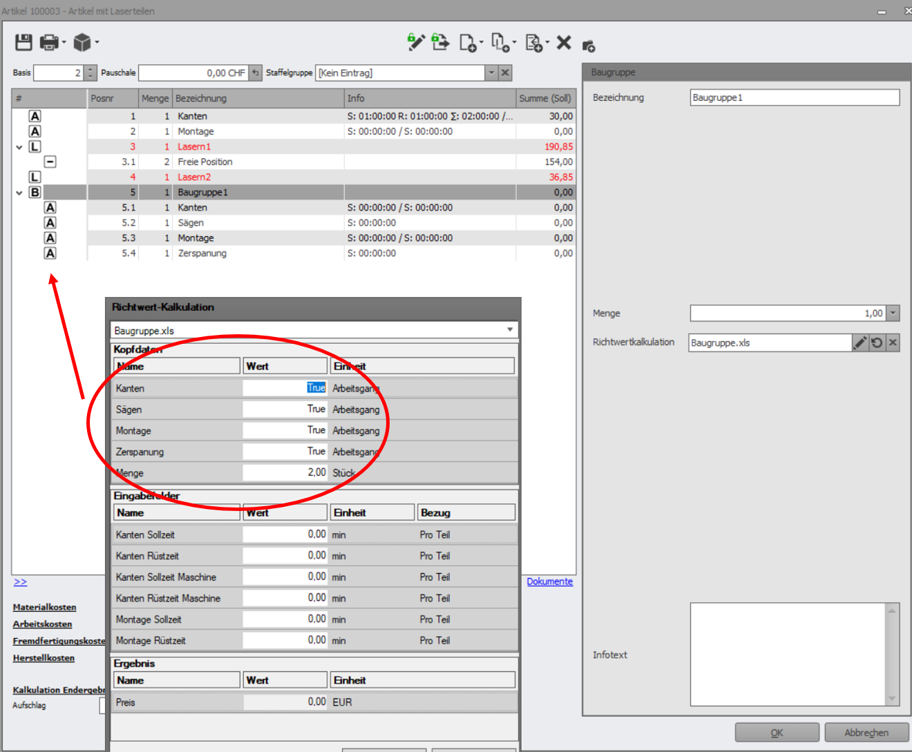 In der Listenansicht Baugruppe wird eine Baugruppe mit dem Kürzel deklariert.