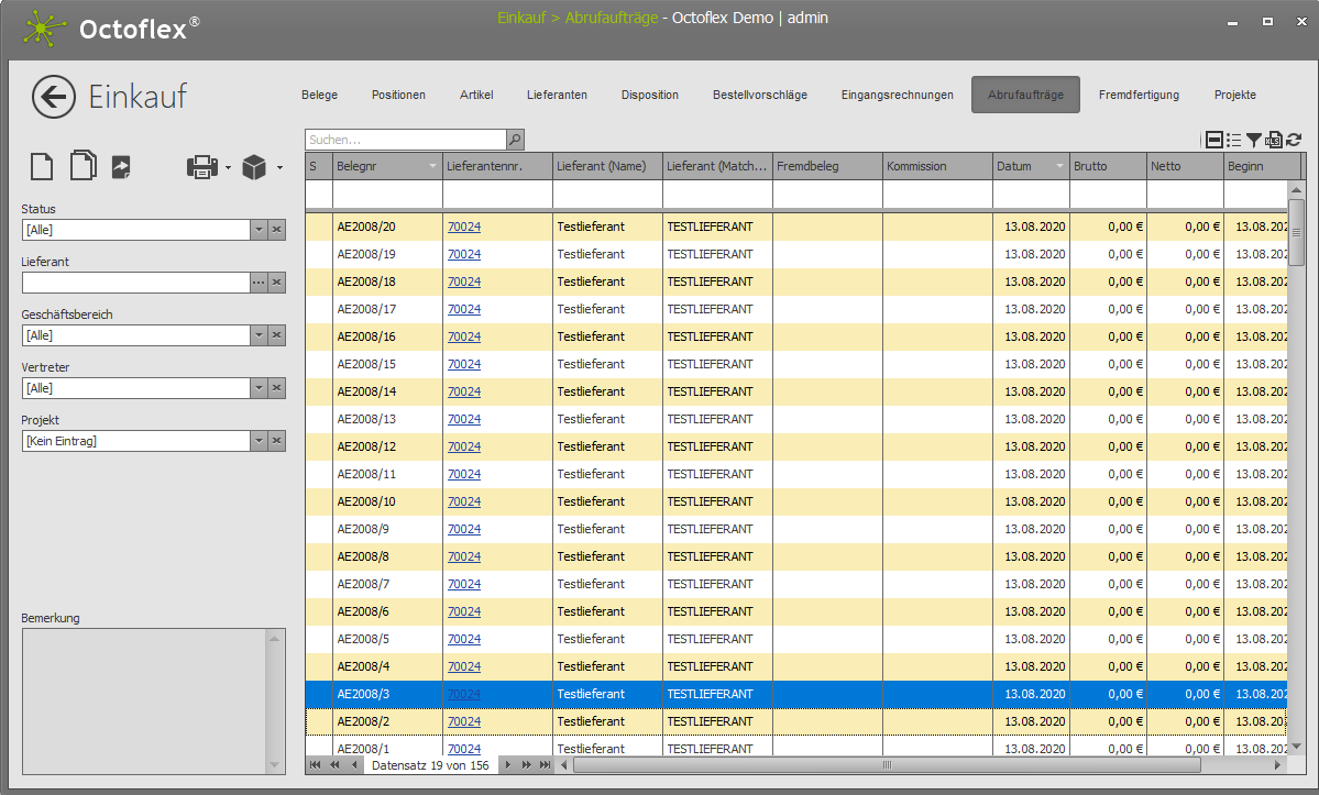 Die "Abrufaufträge"-Einkaufansicht zeigt eine speziell auf den Einkauf zugeschnittene Sicht auf die Abrufaufträge.