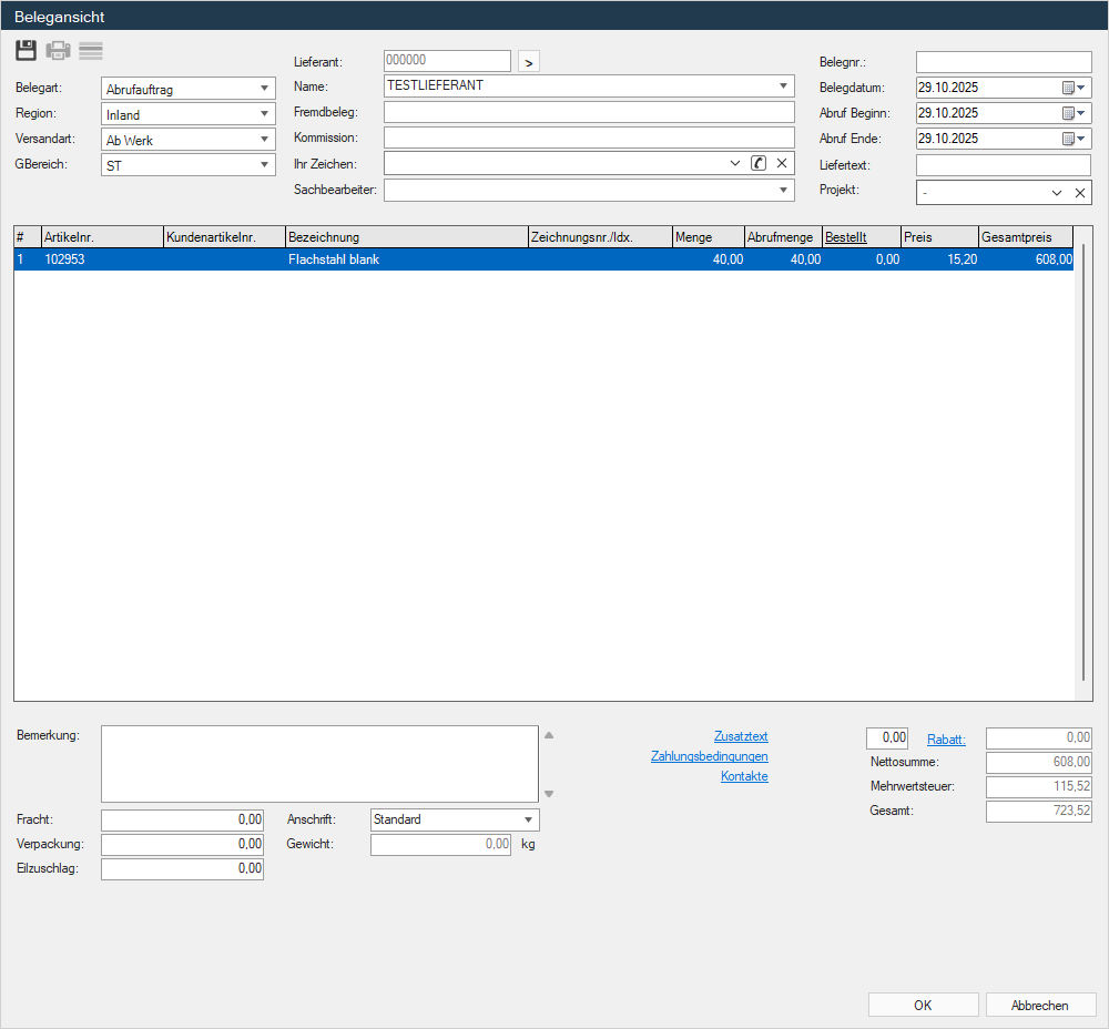 Abrufauftrag-Einkauf erstellen