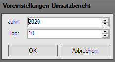 wird der "Voreinstellungen Umsatzbericht"-Dialog geöffnet.