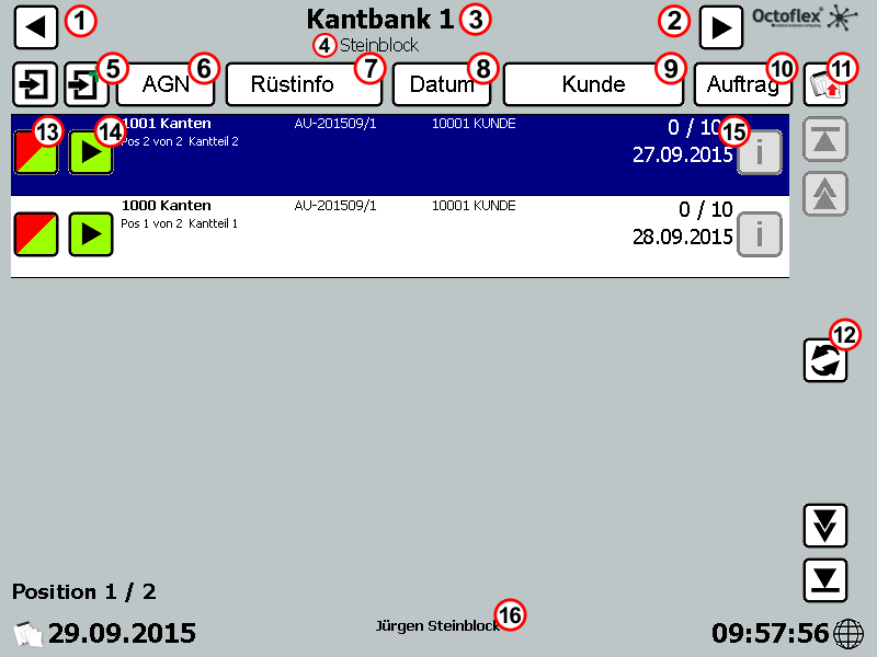 - 13 - Status der Arbeitsgangs (rot = freigegeben / rot-grün = in Arbeit / grün = Abgeschlossen)