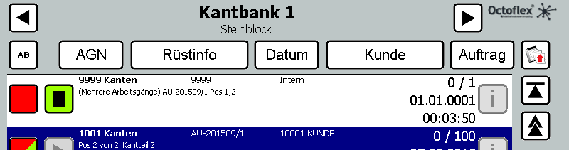 Der aktive Arbeitsgang wird unabhängig von der Sortierung / Filterung immer an erster Stelle in der Liste angezeigt