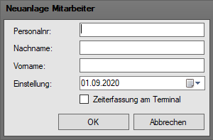 klicken. Es öffnet sich der "Neuanlage Mitarbeiter"-Dialog.