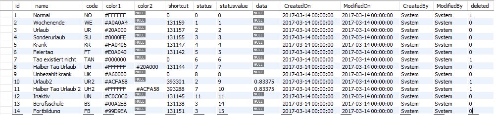 Neue Einträge werden ohne GUI direkt in der Tabelle of_per_tagstatus vorgenommen.