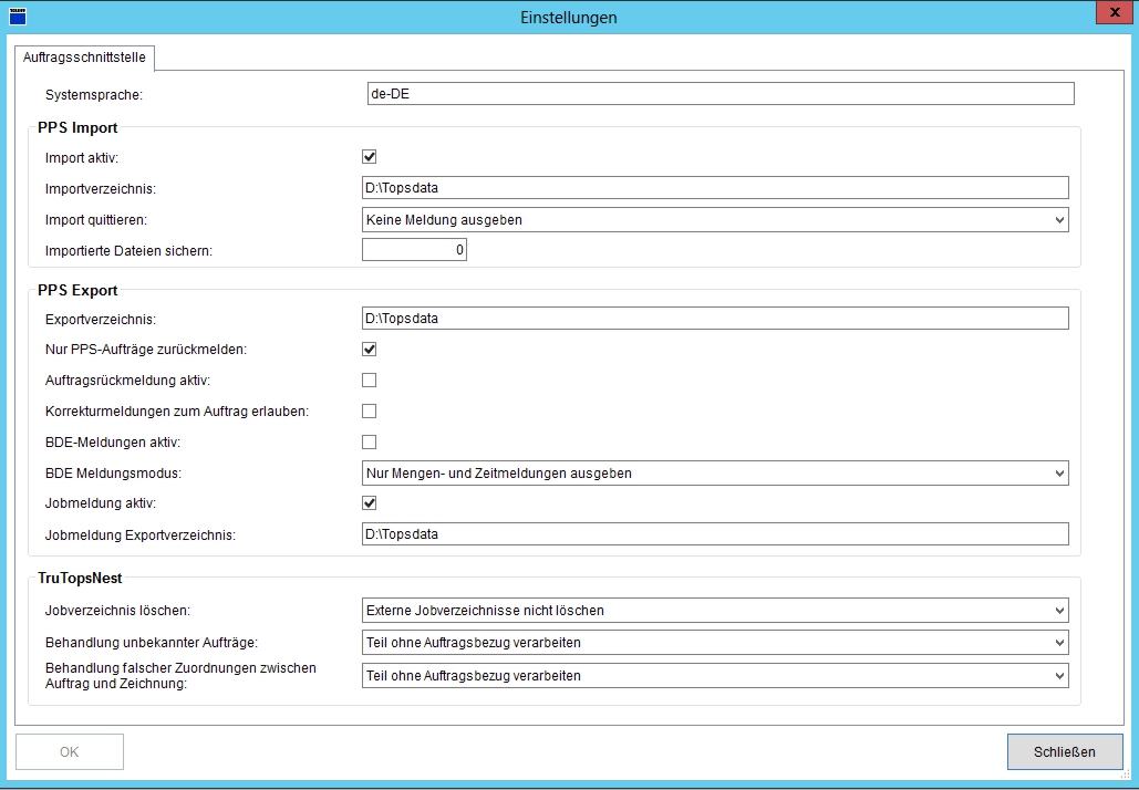 Im TruTops müssen in der Auftragsschnittstelle Einstellungen vorgenommen werden.