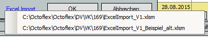 Klicken Sie nun auf den Link "Excel Import", werden Ihnen alle als Dokument hinterlegten Excel-Tabellen zum Import angeboten.