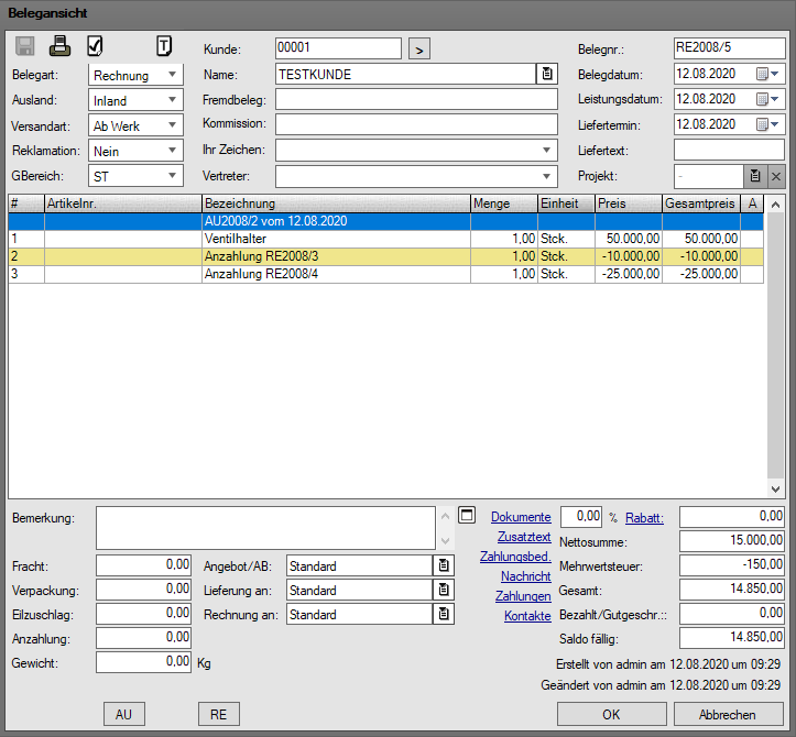 Informationen über den "Belegansicht"-Dialog stehen unter Belegansicht-Dialog und über das Erstellen eines Beleges unter Beleg erstellen.